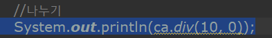 System.out.println(ca.div(10, 0));