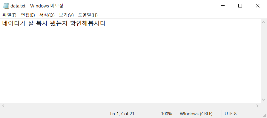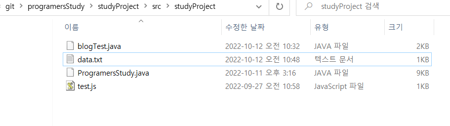 이 경로에 data.txt를 만들었으면 코드로 넘어가봅시다